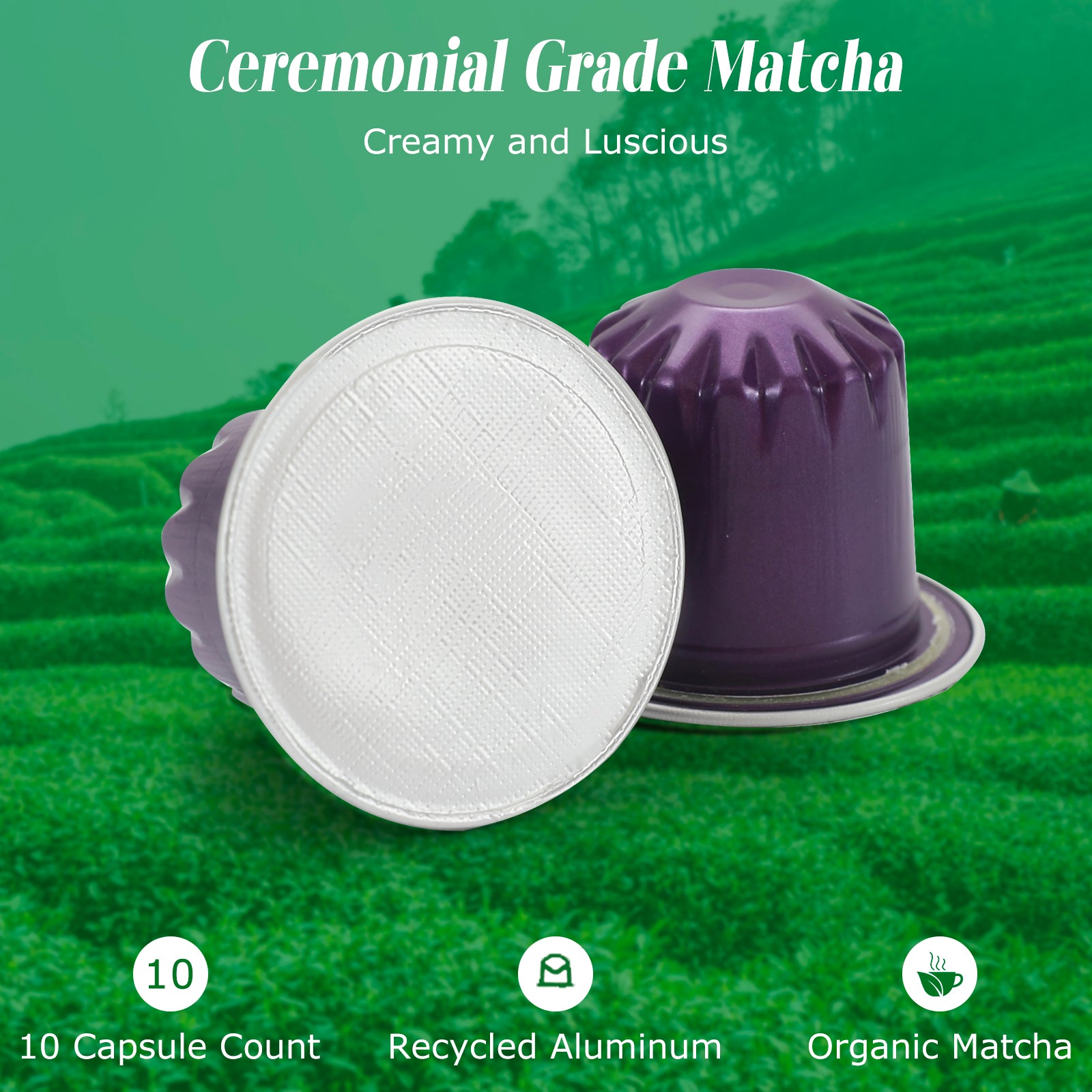 Organic Matcha Green Tea Capsule Unsweetened, Nespresso Original Compatible Pods,Recyclable Line Aluminium Capsules,10 Count (Pack of 1)